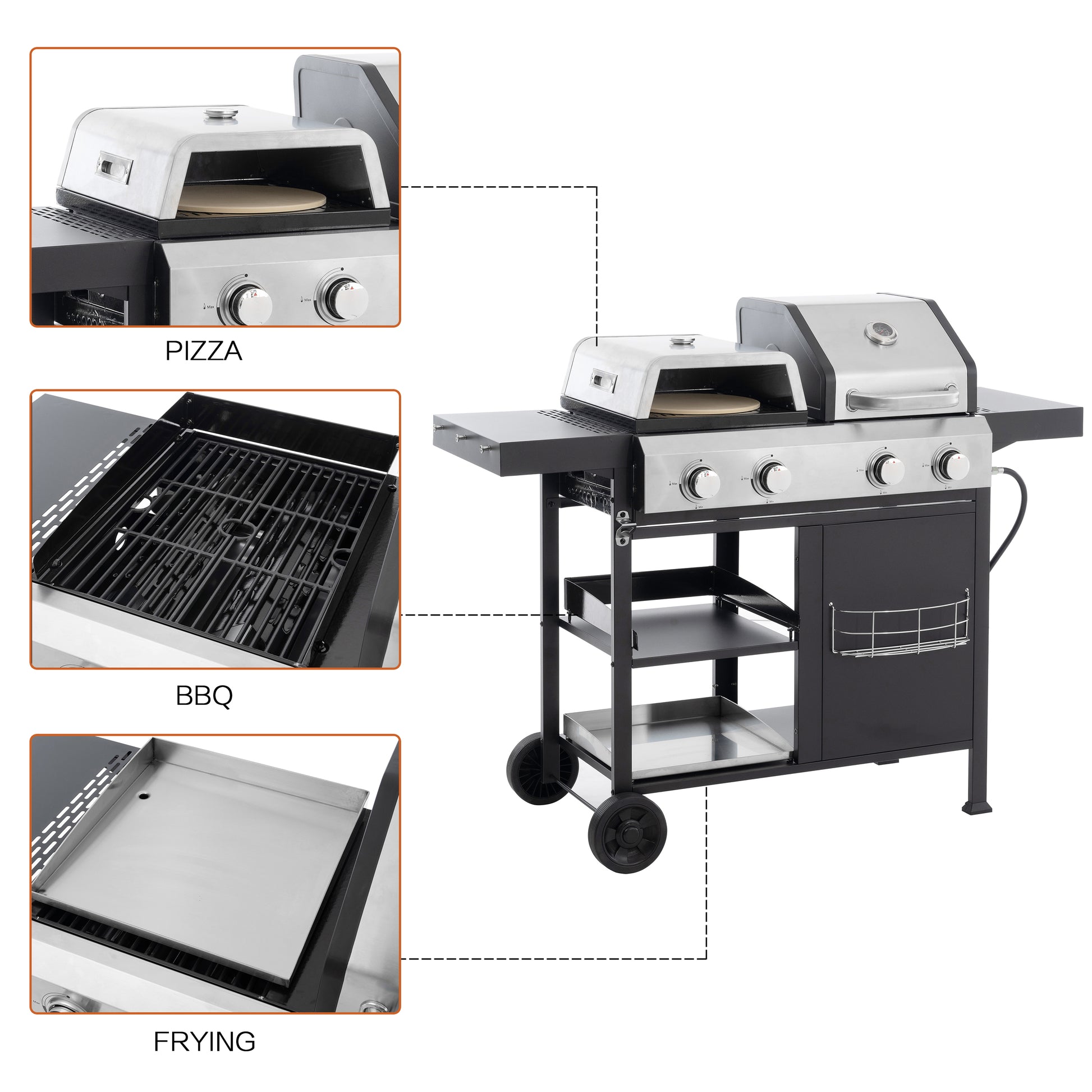 2+2 multifunctional gas barbecue grill and covered grill combination for outdoor cooking - barbecue, barbecue, pizza.