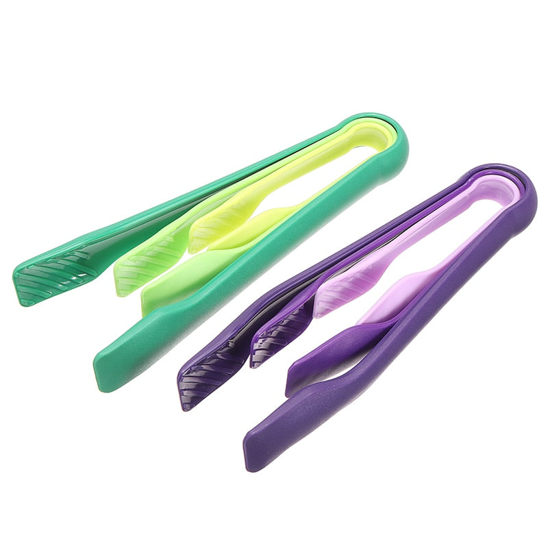 3Pcs/set Kitchen Food Tongs Plastic Salad Bacon Steak Clamp Tongs Children Mini Food Bread Clip Tools Gadget Reusable S/M/L