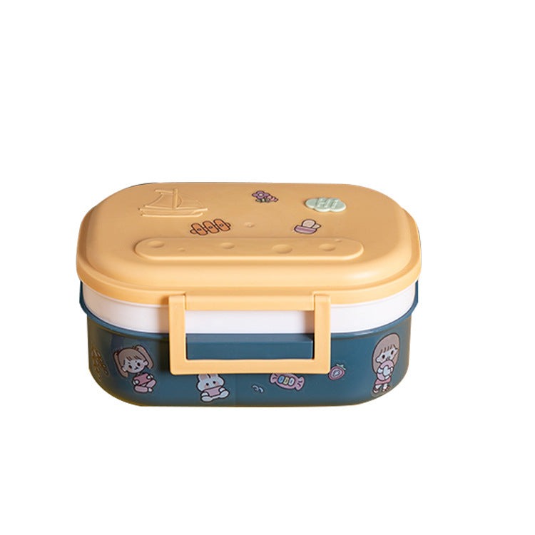 Cartoon cute portable square single layer lunch box with handle lunch box