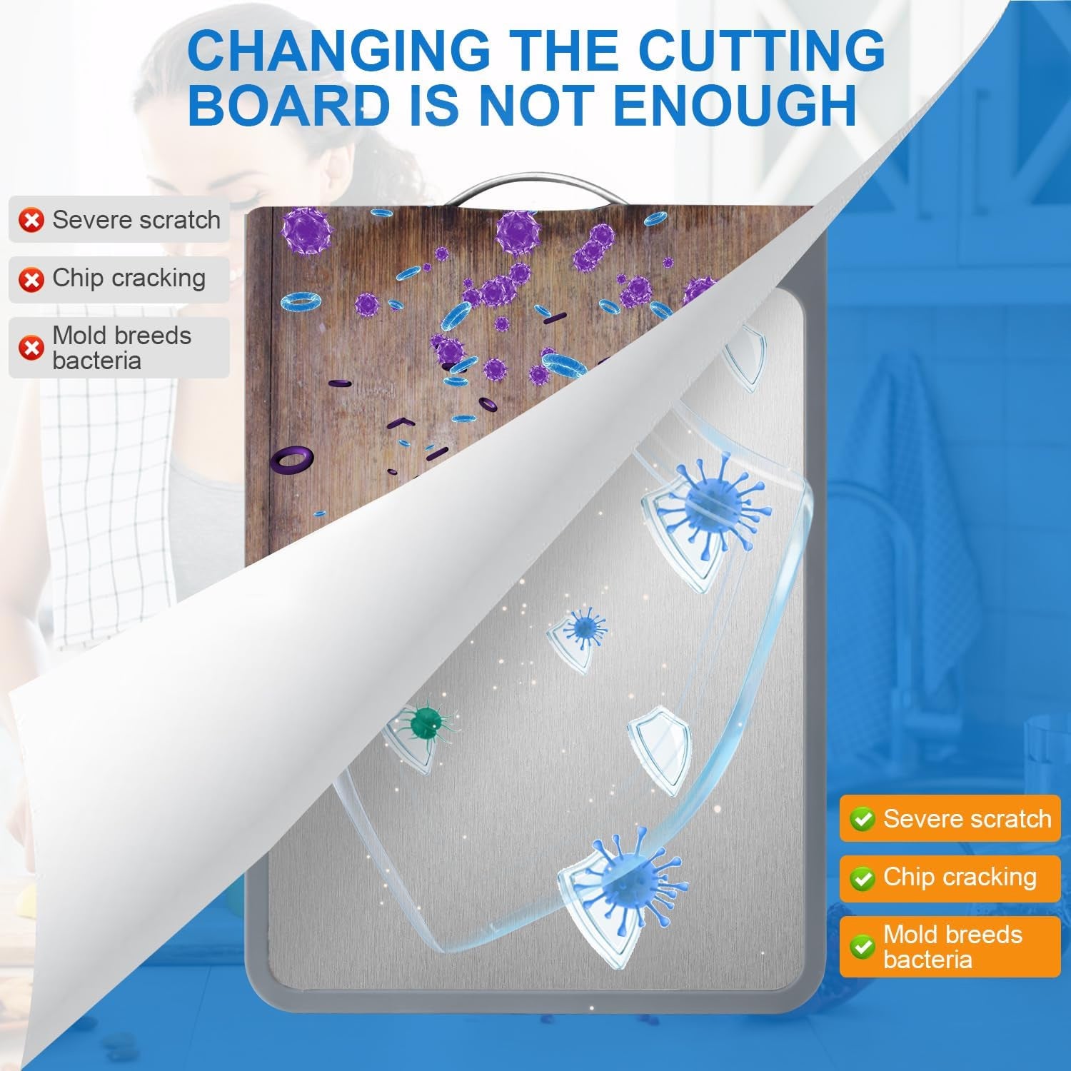 Double sided plastic stainless steel cutting board for household kitchen wheat straw PP cutting board cutting board