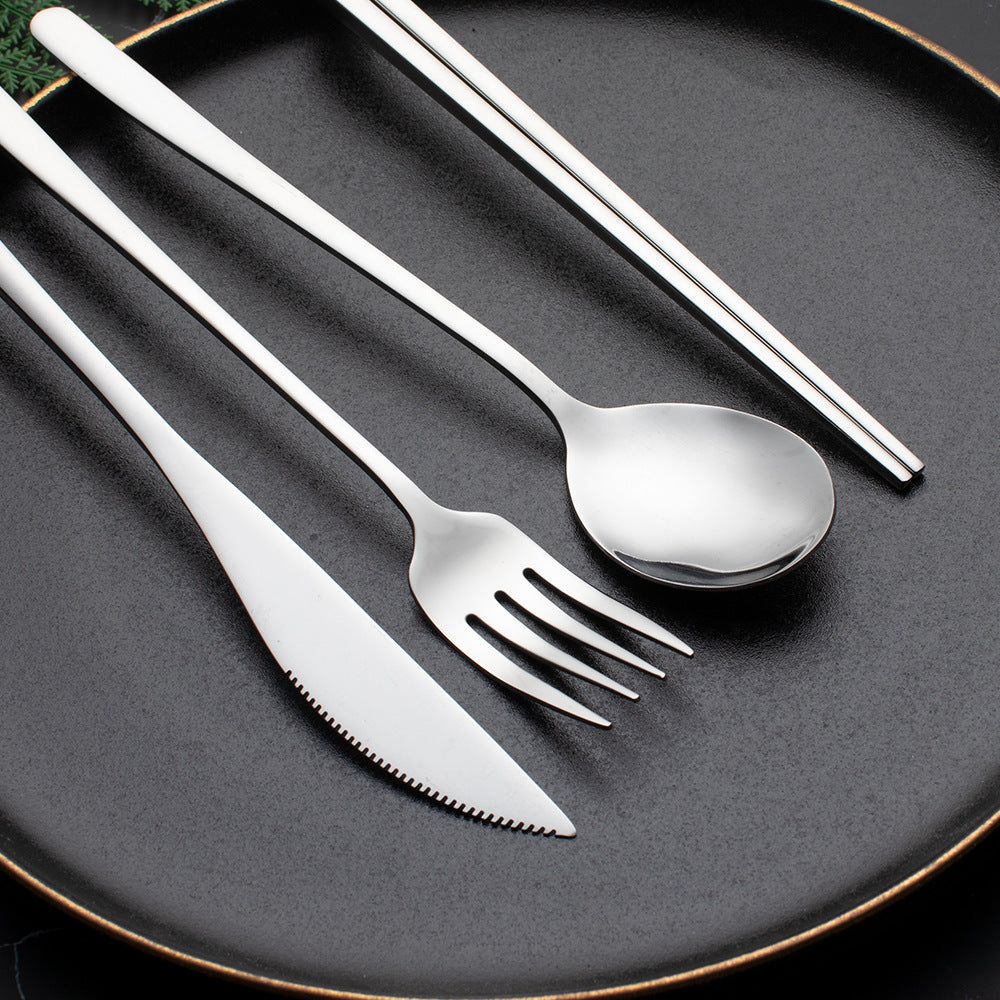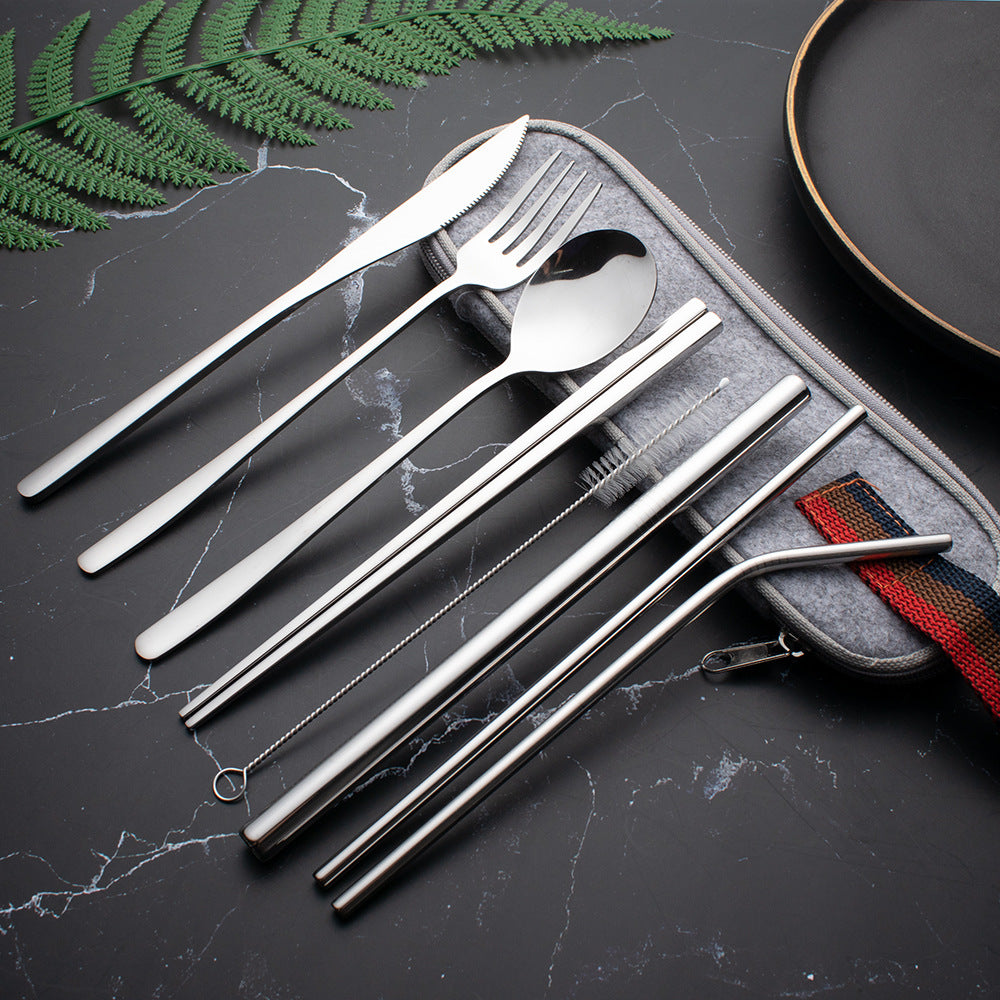 New Stainless Steel Portable Tableware 304 Stainless Steel Straw Korean Titanium-Plated Knife, Fork, Spoon, Chopsticks Set