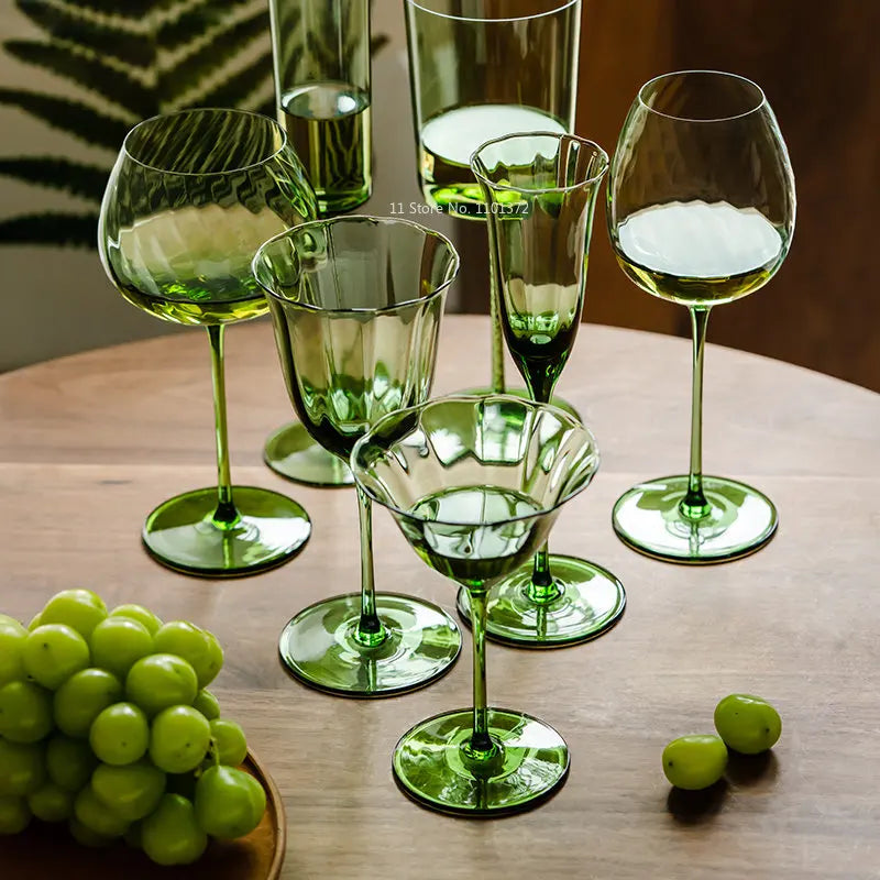 Vintage Green Red Wine Cup Glass Goblet Champagne Cup Cocktail Martini Glass Home Drinking Utensils Crystal Cup
